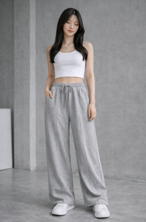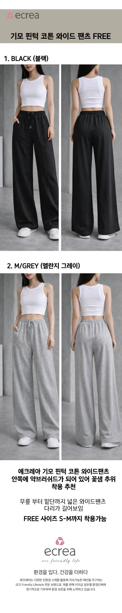 에크레아 기모핀턱코튼 와이드팬츠