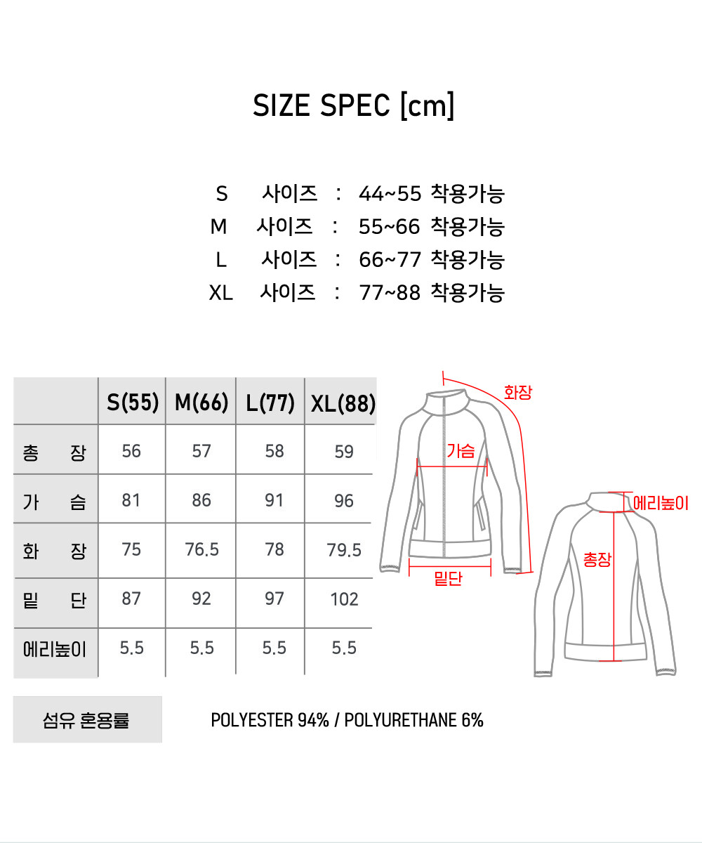 - 소 재 : POLYESTER 94% / SPAN 6%